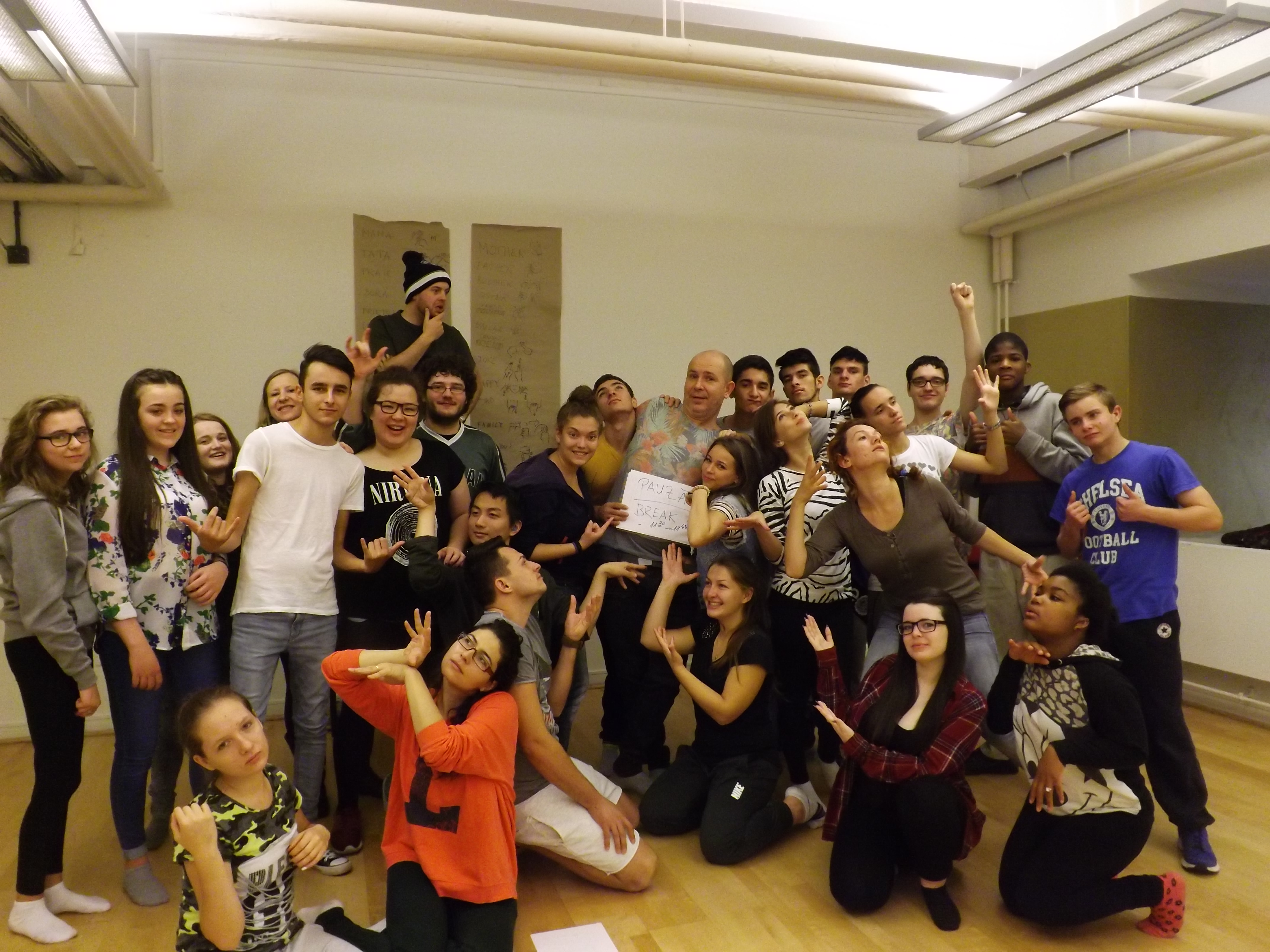 Un limbaj comun, exprimat prin gesturi, trebuie sa fie descoperite, iar semnul teatral va fi creat dincolo de barierele de o anumita limba, o anumita tradiTie, o anumita religie, etc. Pornind de la calea cuiva de a acTiona pe scena, vom crea un exerciTiu in cadrul caruia fiecare participant sporeste momentul artistic. Inceputul este o acTiune banala, care va fi continuata de o alta, creand astfel o poveste ad-hoc, fara semne prestabilite. Semnul care este descoperit, impreuna cu partenerul si acTiunea care urmeaza sa fie construite va fi preluata de catre un alt partener, care creeaza noi acTiuni, care vor fi utilizate de catre urmatorul partener la ultimul actor care se inchide aceasta stare si apoi poate propune o noua acTiune, un semn nou - astfel, exerciTiul poate continua la nesfarsit. Numele acestui exerciTiu va fi povestea nu se termina niciodata.